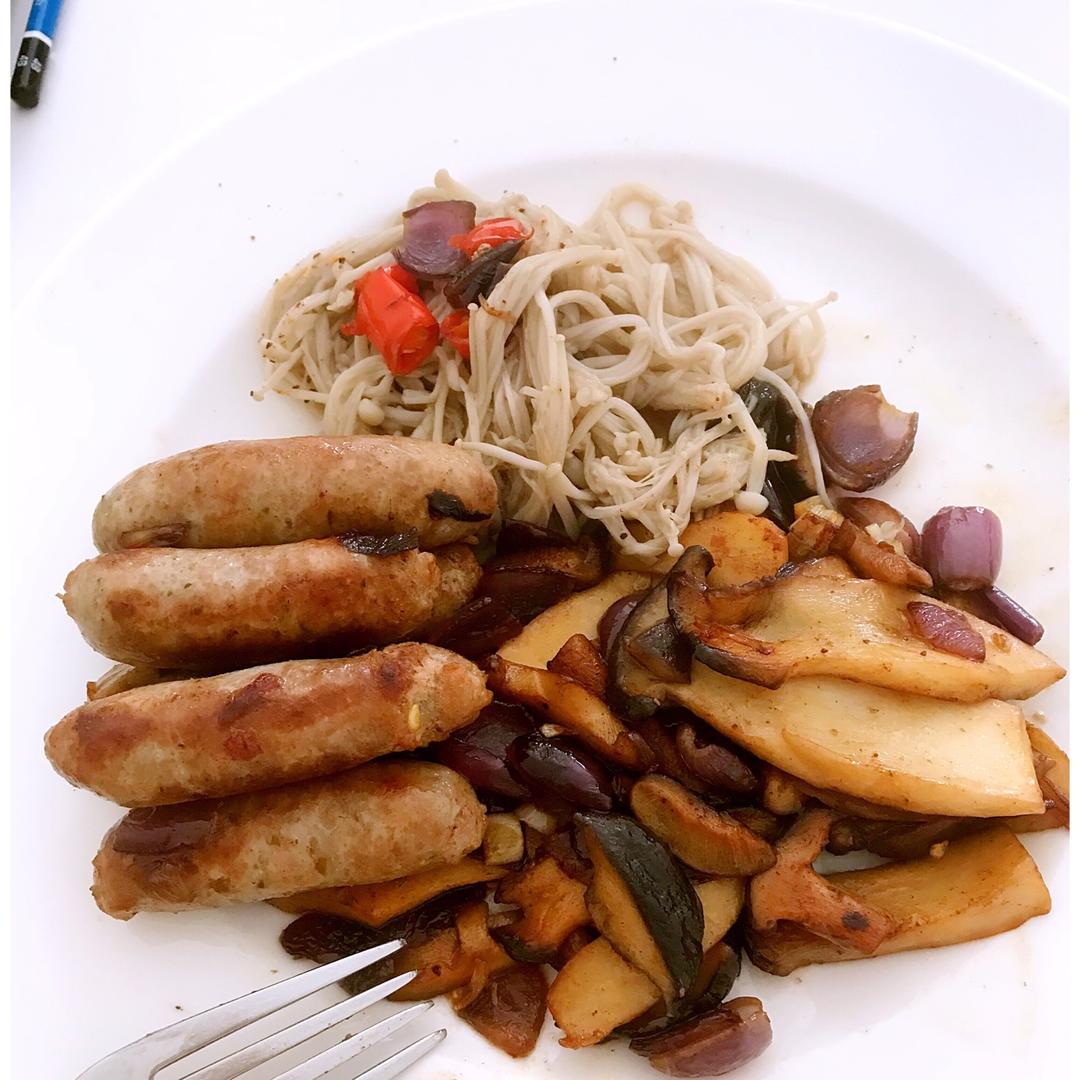 煎三菇配香肠