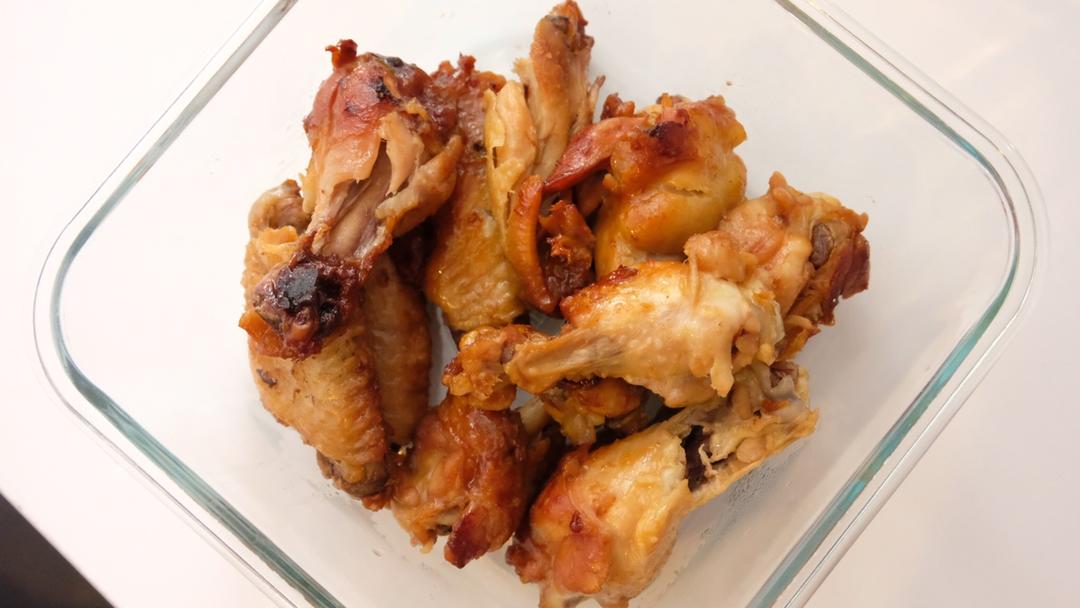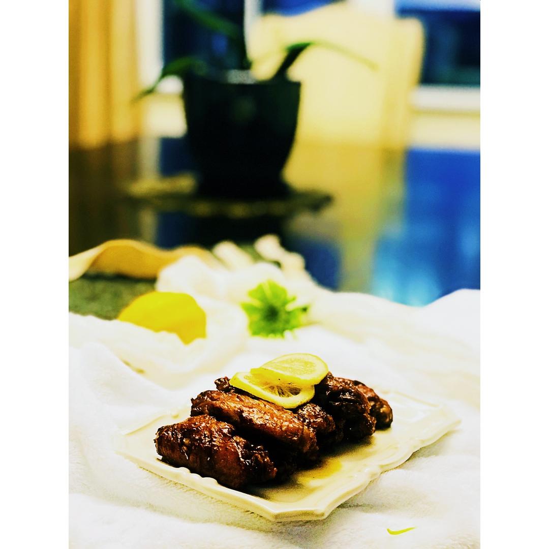 照烧鸡翅,买的照烧酱,颜色太黑不好看。下次还是按方子做出来应该更漂亮。😅