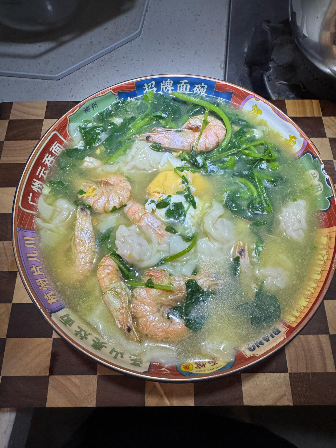 虾,西洋菜,鸡蛋,馄饨