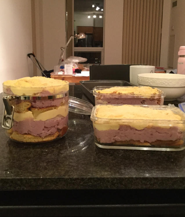 只参考了豆乳卡仕达酱部分,减糖1/2正正好!自己秘制香芋简直是小时候冰淇淋的味道!还有浓浓椰香~咖啡蛋糕胚做底,配着豆乳...