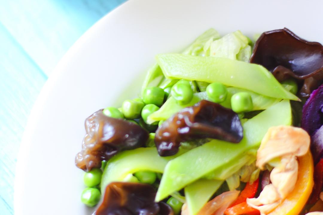 莴笋西生菜木耳豌豆沙拉,
