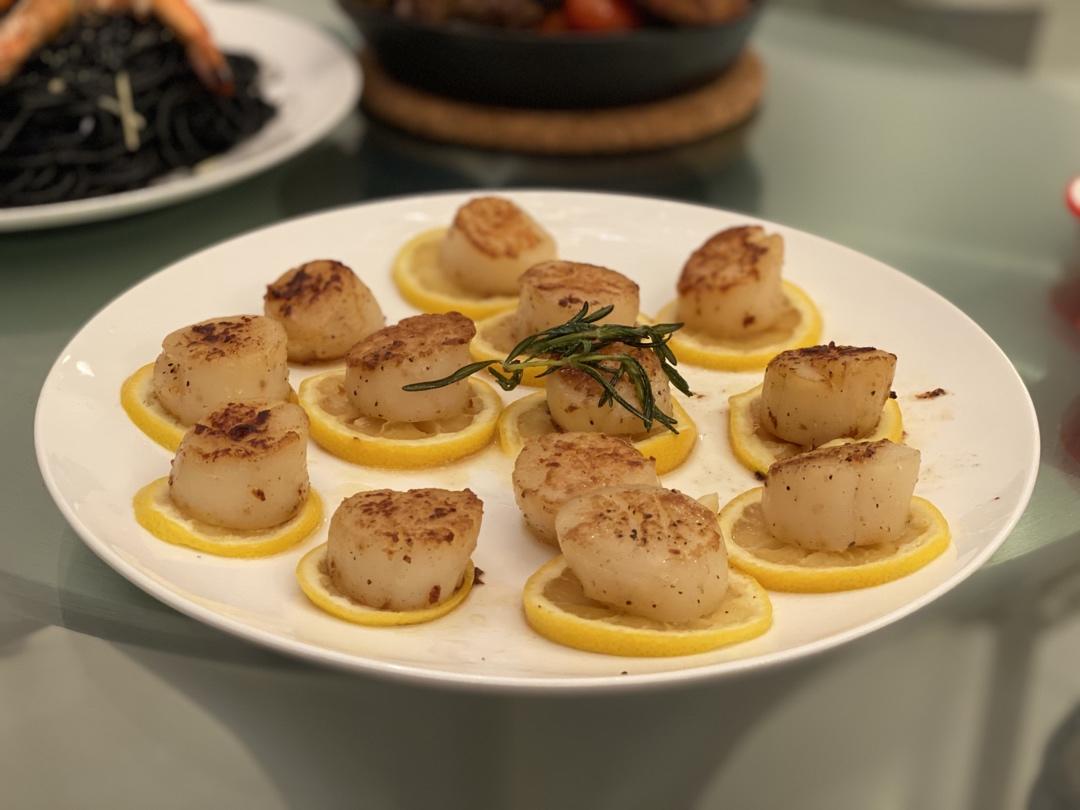 香柠煎带子配黑椒蒜蓉汁