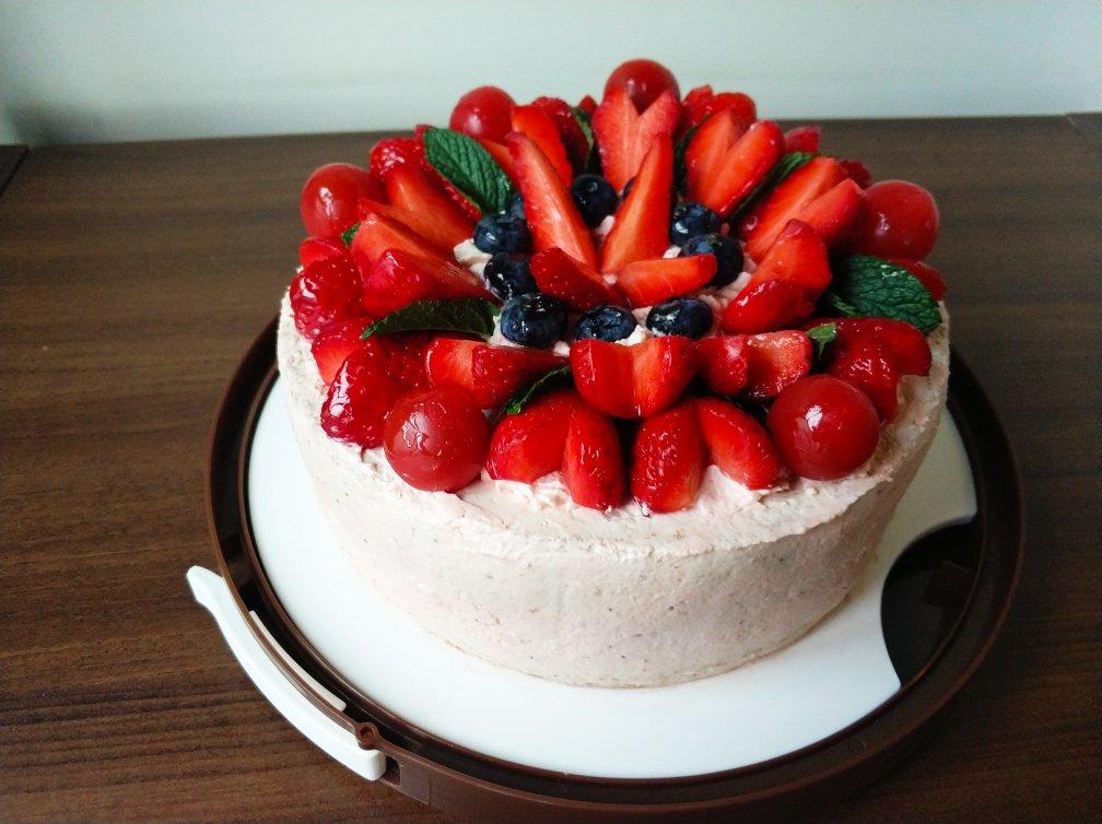 酸奶戚风蛋糕,没冷透就脱模了,有点残,赶啊。蛋白貌似打过了些,拌久了些,没能爆...