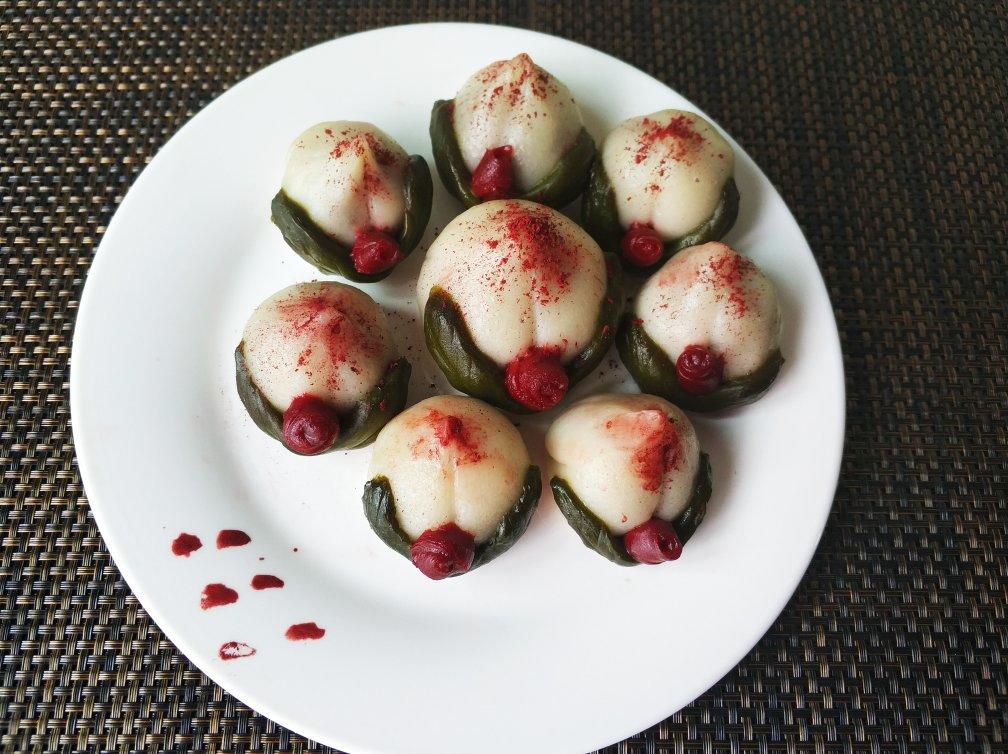 寿桃,第一次做土风的生日食品,不太精致,抹茶蒸后...
