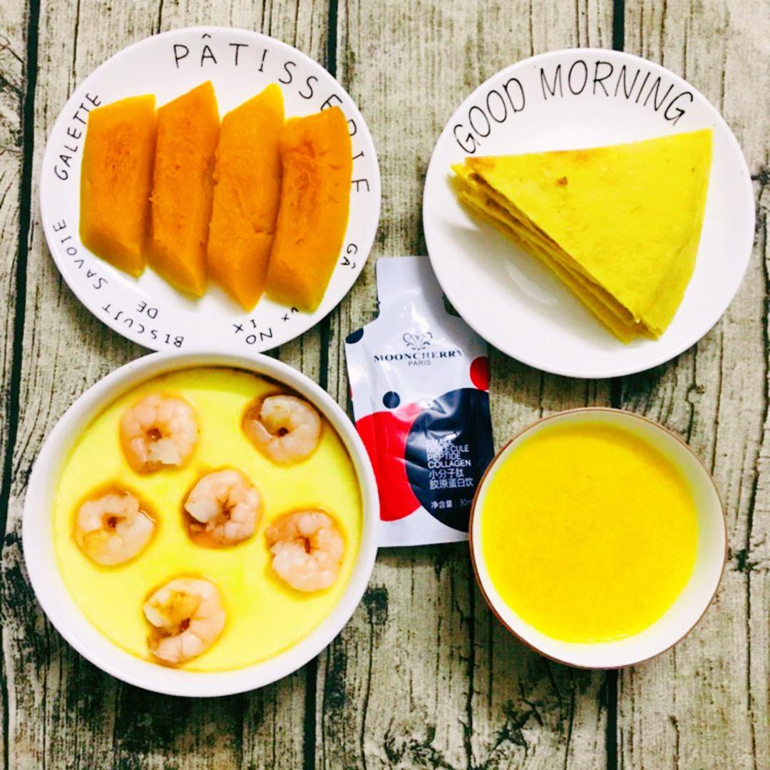 小米鸡蛋饼,虾仁🍤鸡蛋羹