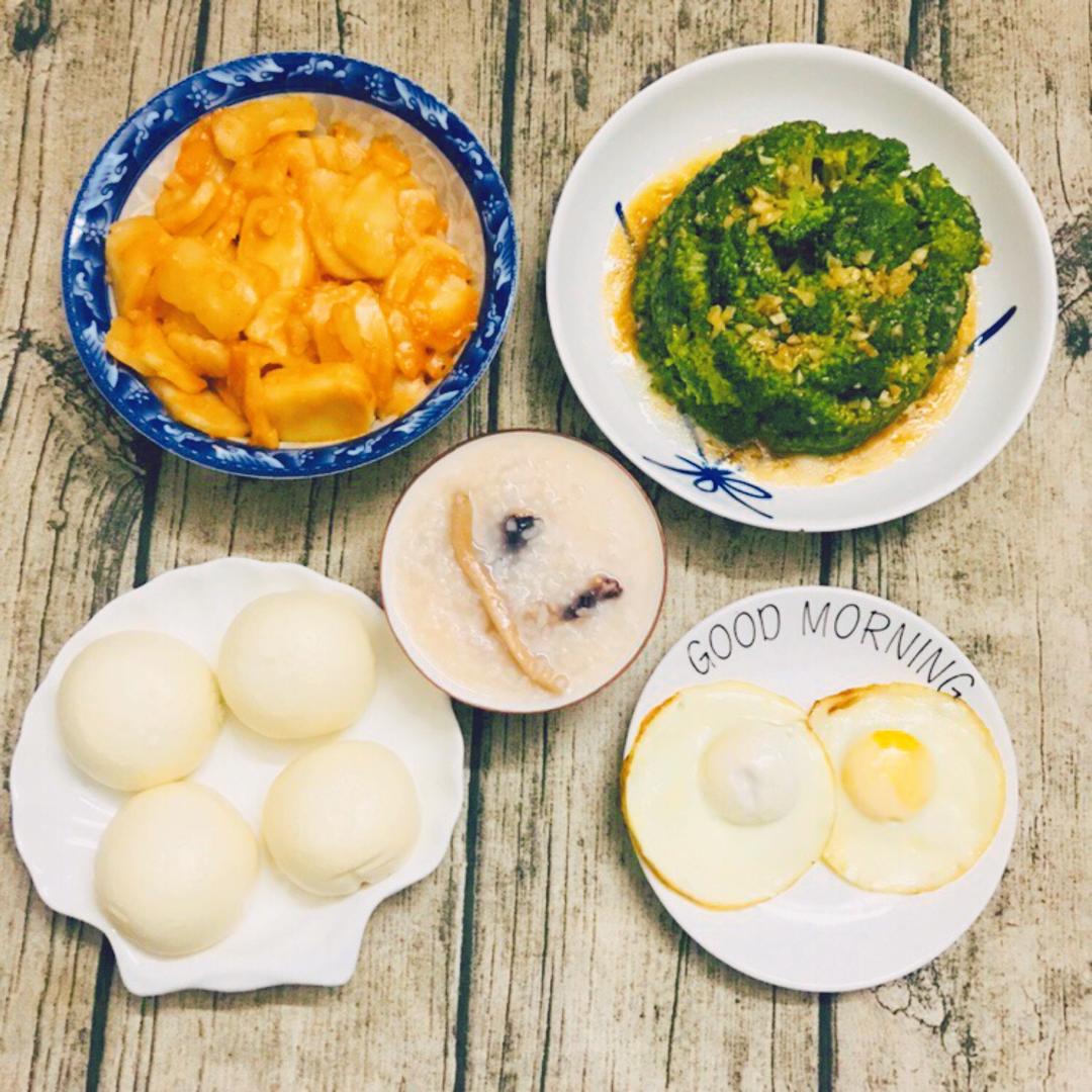 奶黄包,炒年糕,煎鸡蛋🍳