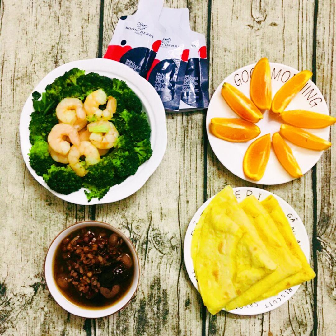 红米杂粮粥,西兰花虾仁,血橙...
