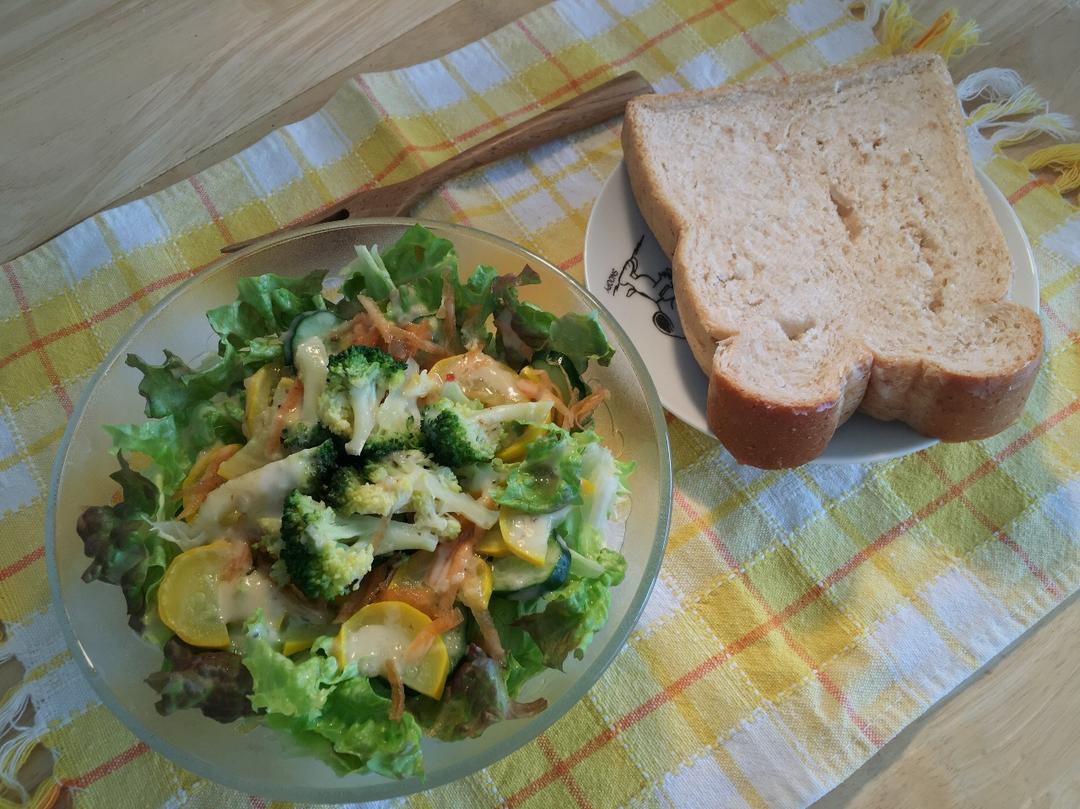 【蔬菜沙拉+椰子油烤麦麸超软厚吐司】(前六)