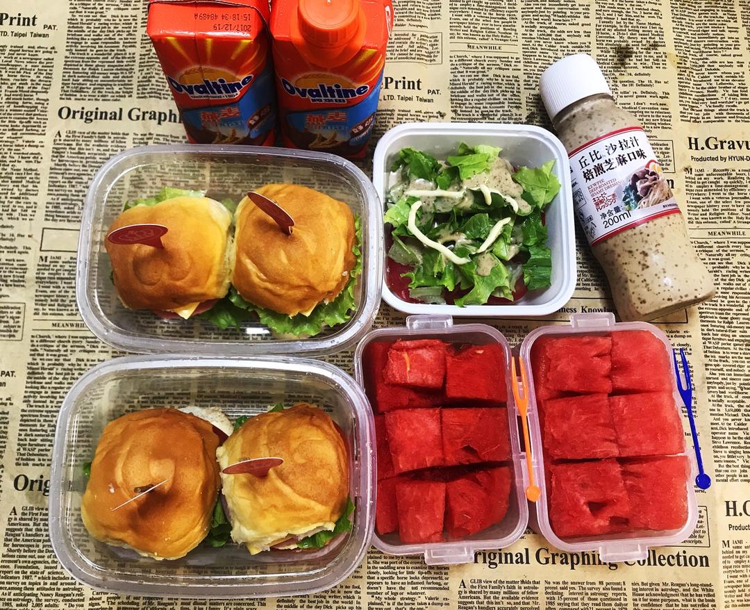 迷你汉堡包🍔➕西瓜🍉➕阿华田🥤