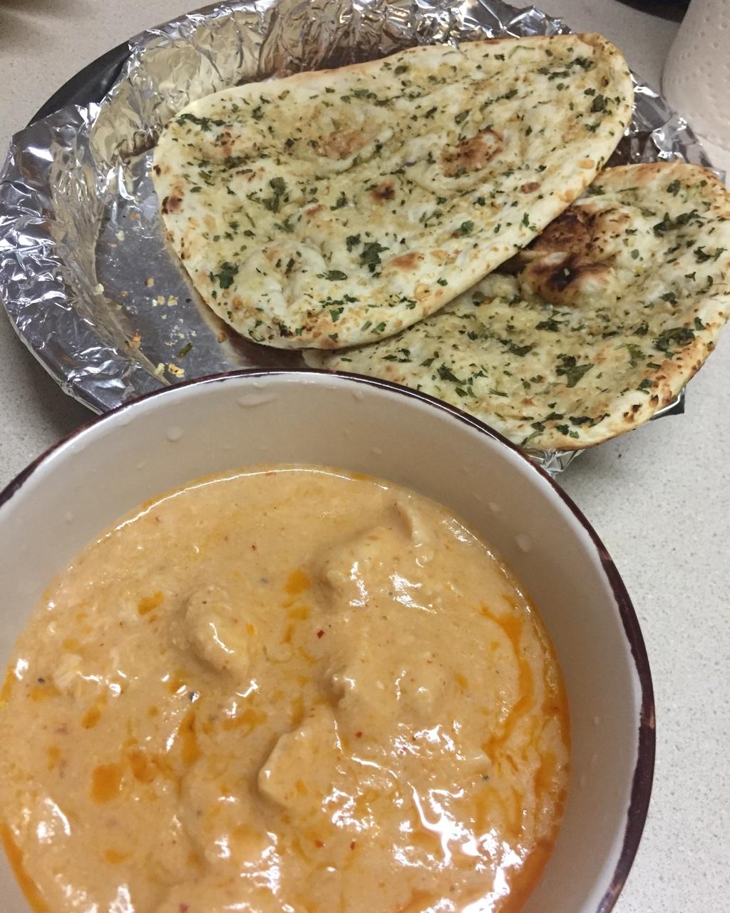 蒜香印度烤馕,红咖喱鸡胸肉