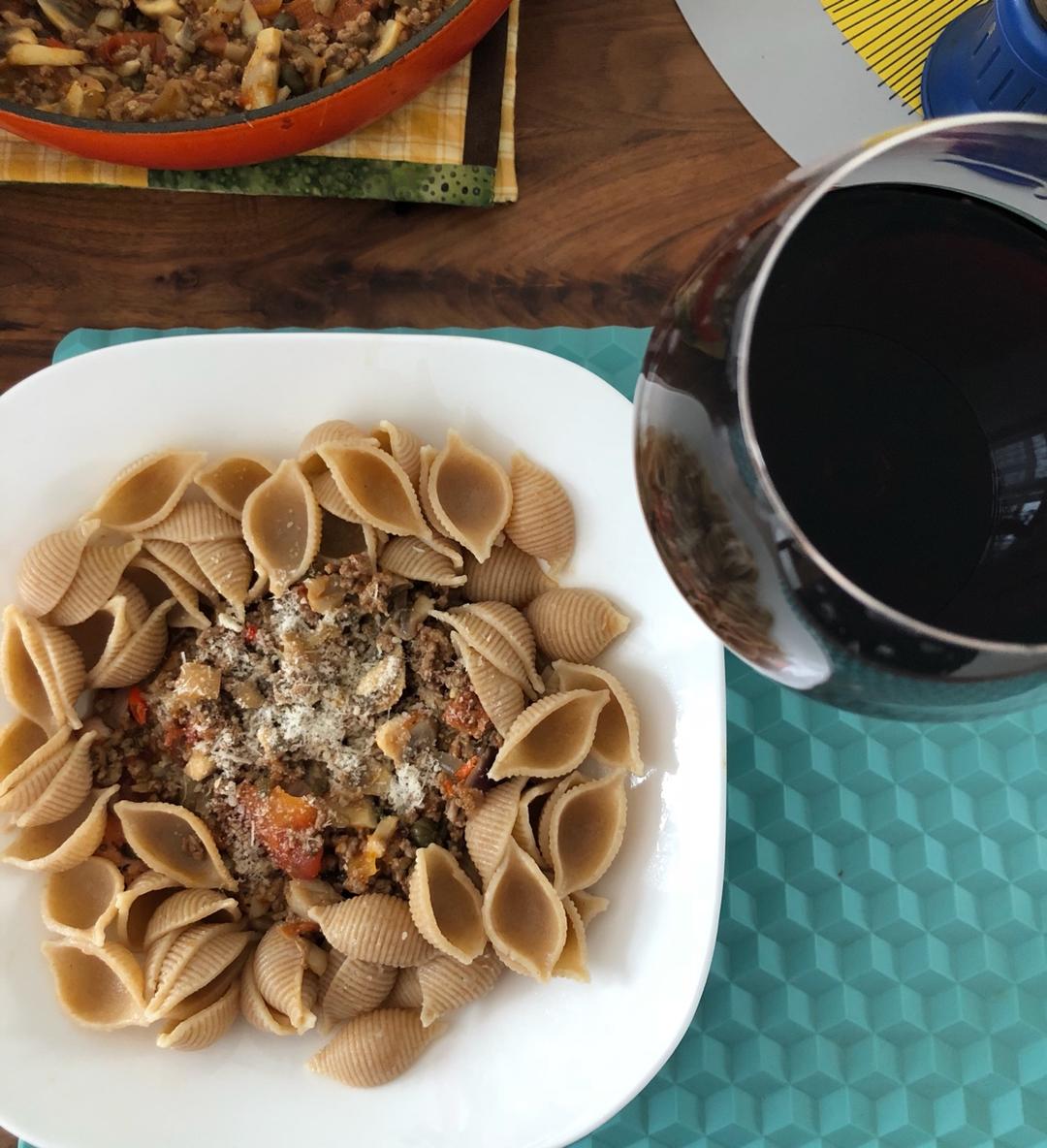 全麦牛肉贝壳面配法式焦糖蛋奶布丁,经过一夜的冷藏,撒了椰花糖的布丁交出了完美的口感,冷热脆软对比真真妙!椰花糖颜色深,不...