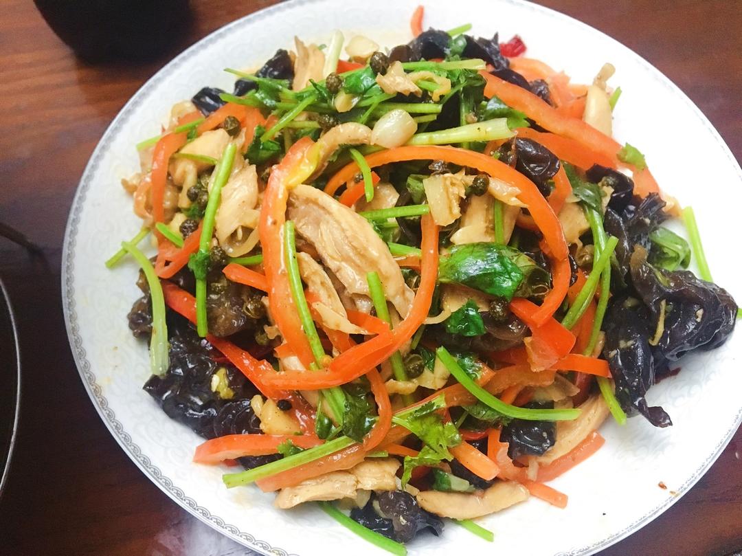 椒麻杂蔬炒鸡肉+干锅花菜