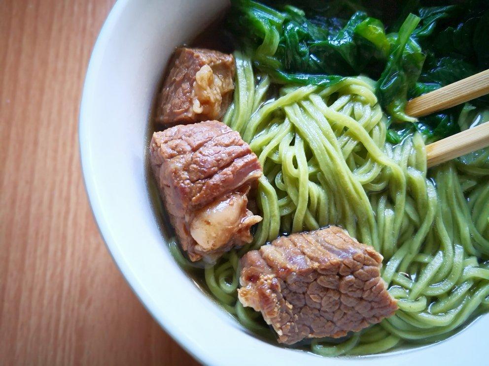 萝卜缨汁面,从REWE拎了一捆带叶胡萝卜,2/3都是萝卜缨,于是榨汁和面。比直接吃草接受程度棒多了,只有淡淡的萝卜缨味。...