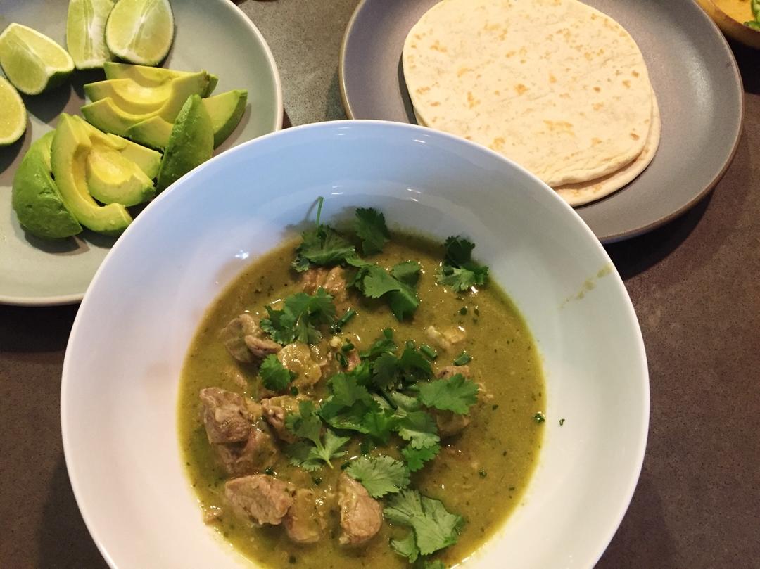 姨妈光顾睡了一下午,醒来晚饭家属已经做好Chile verde了。太好吃,两磅肉已被消灭光。 #晚餐•2018年4月7日...