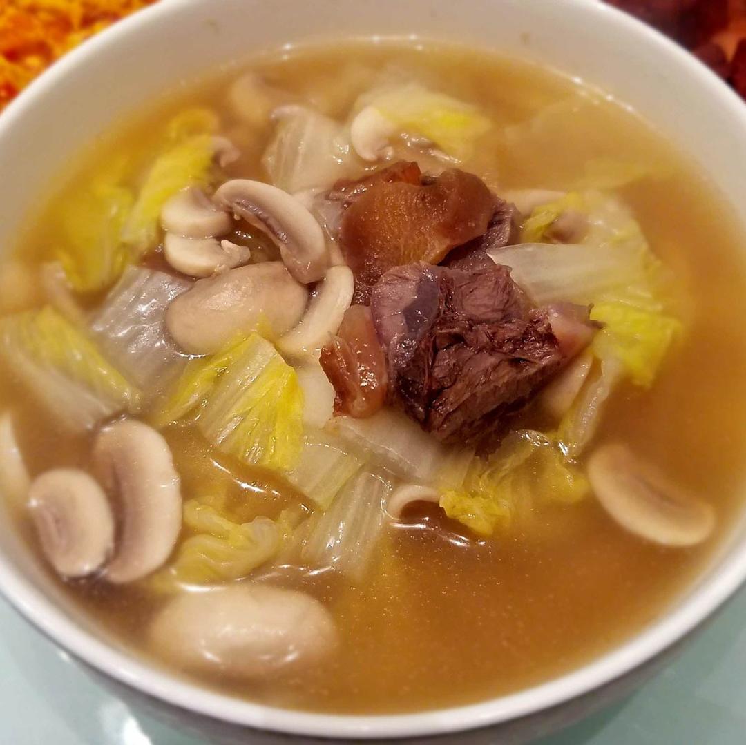 浓汤煲的牛肉蘑菇汤