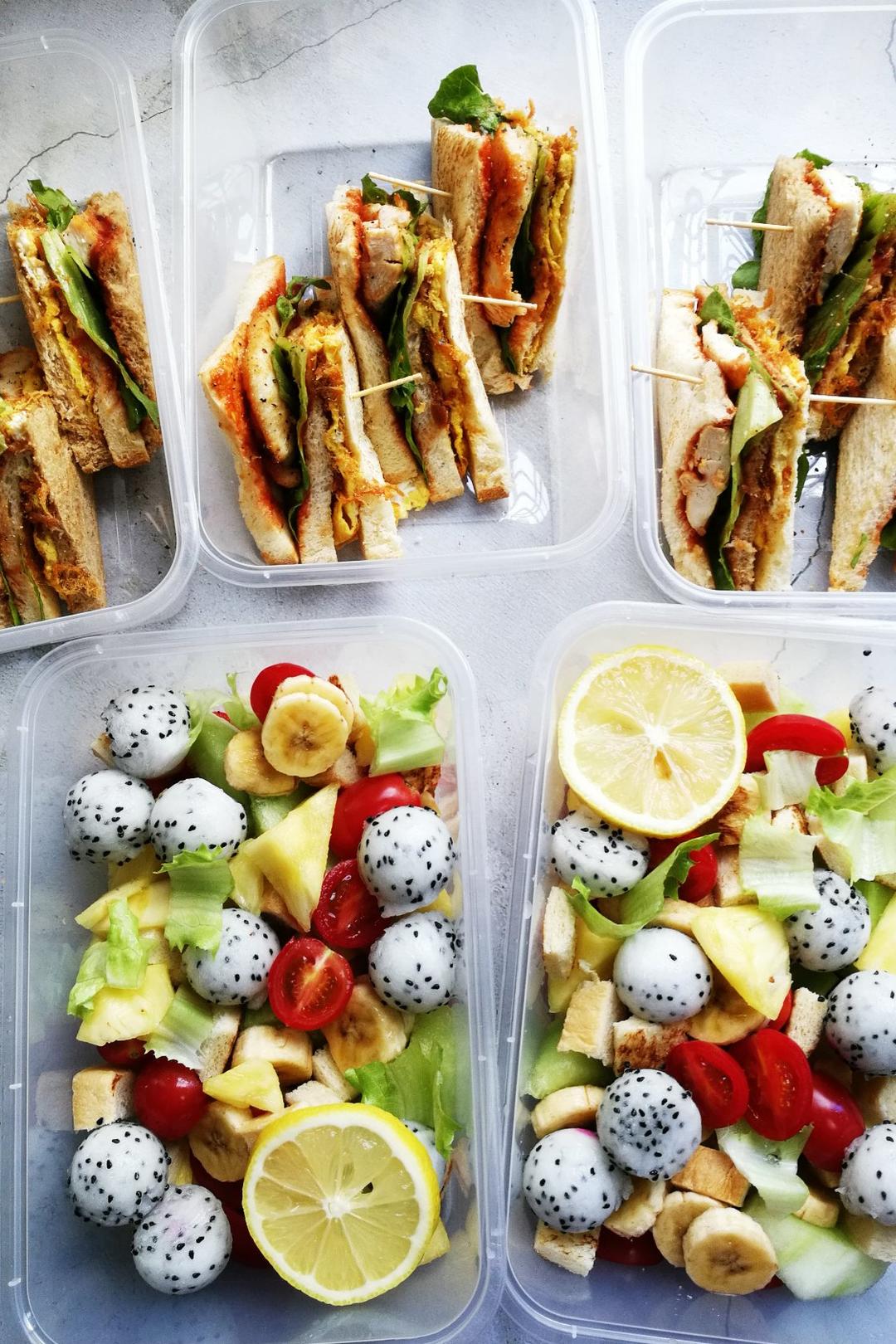 春游季~~为阿福准备的黑椒鸡排三明治+水果沙拉[耶](幸好天气预报不准,今天没有下雨,阿福...