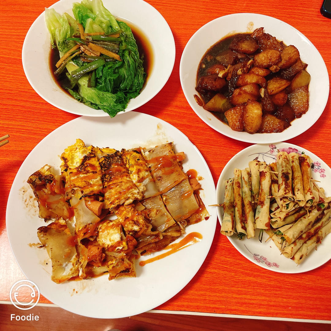 烤冷面➕烤菜卷➕红烧冬瓜➕白灼生菜