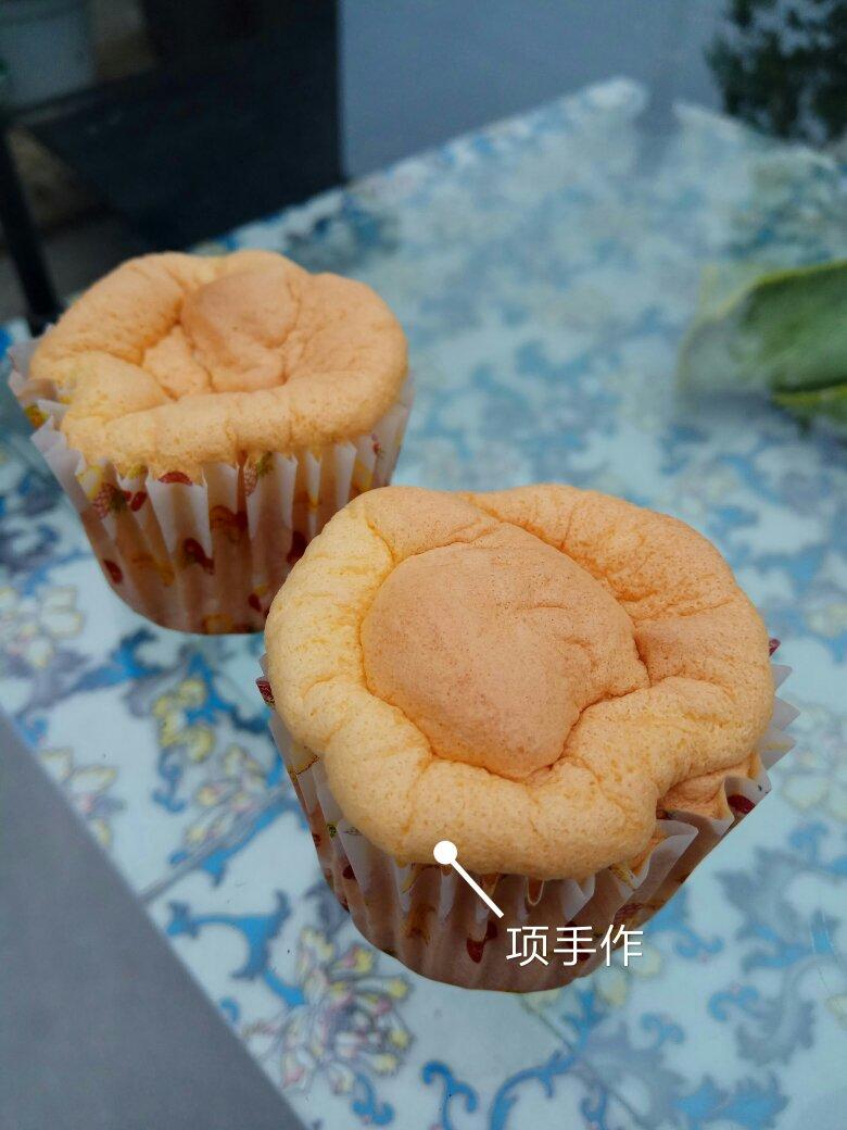 减少了10克糖,蛋白打过了,蛋黄糊用的后蛋法(忘记加糖,所以50g糖都在蛋白里了😂 而且没用牛奶,用的水)