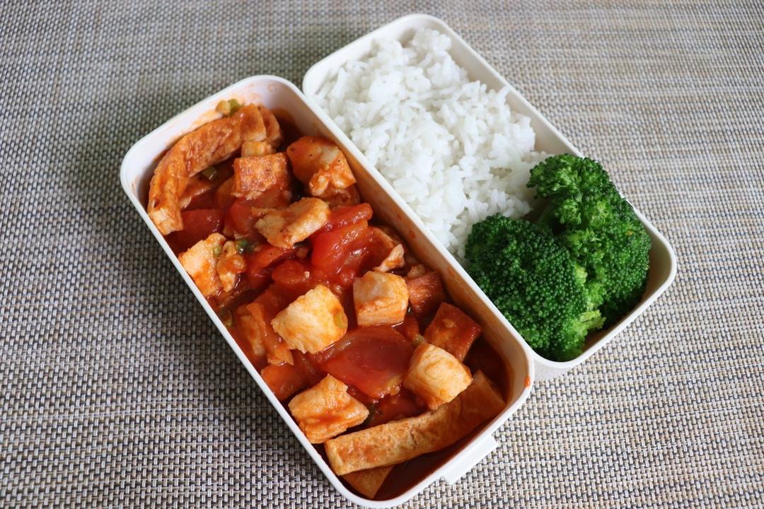 今日份便当🍱「番茄焖豆腐鱼柳」