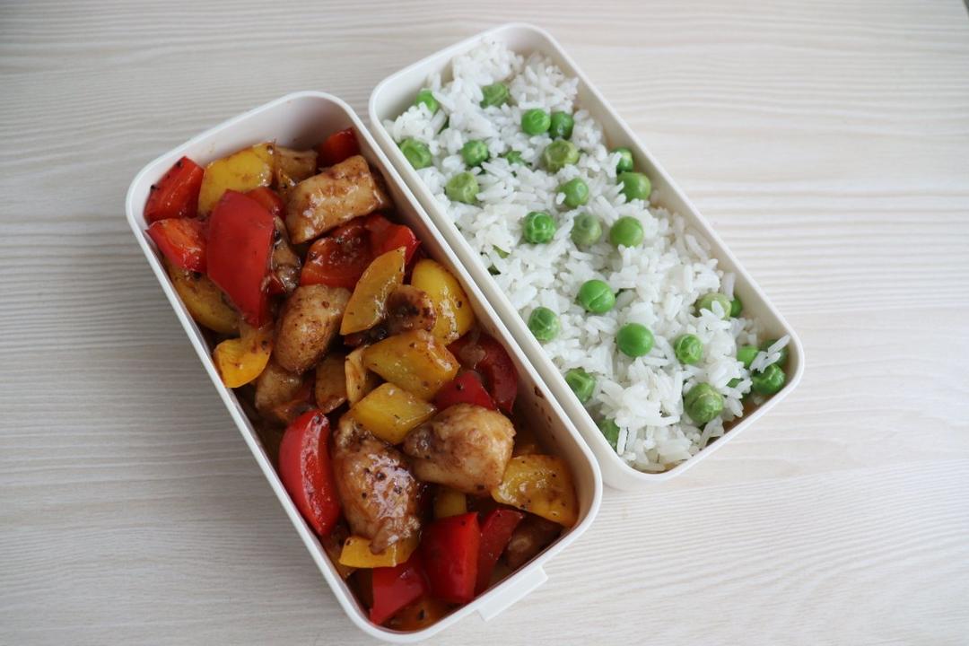 今日份便当🍱「黑椒味鱼丁+豌豆饭」