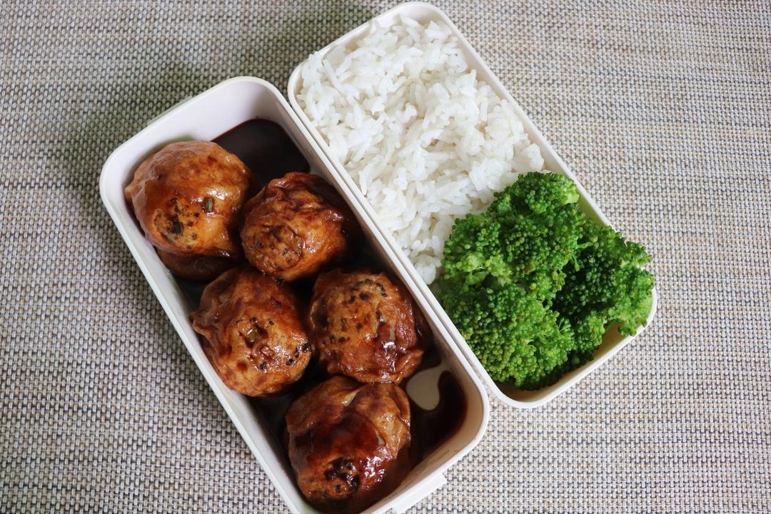 🍱🍱 今天带了「面筋酿肉」第一次做,好期待呀~等待下班!!