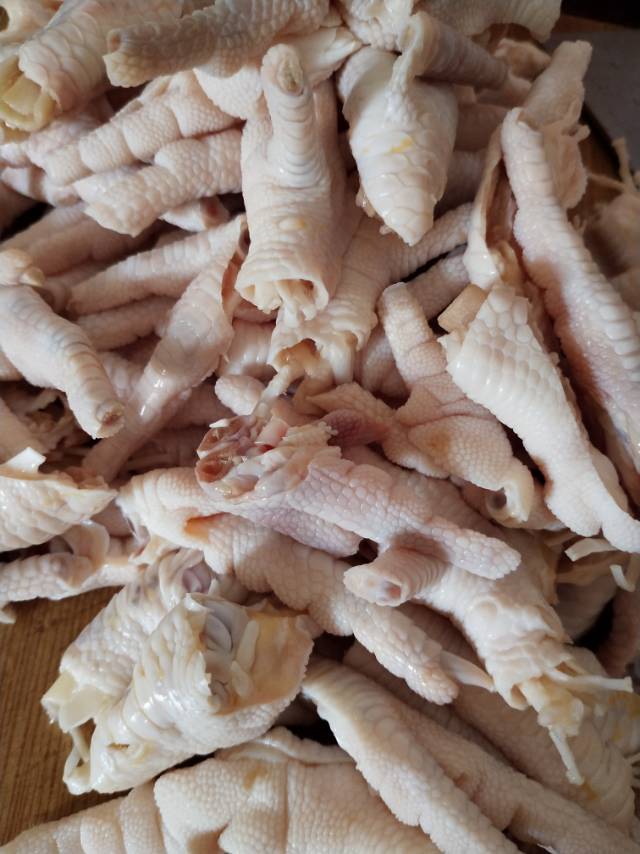 ⒈鸡爪洗干净切掉指甲 剁开。