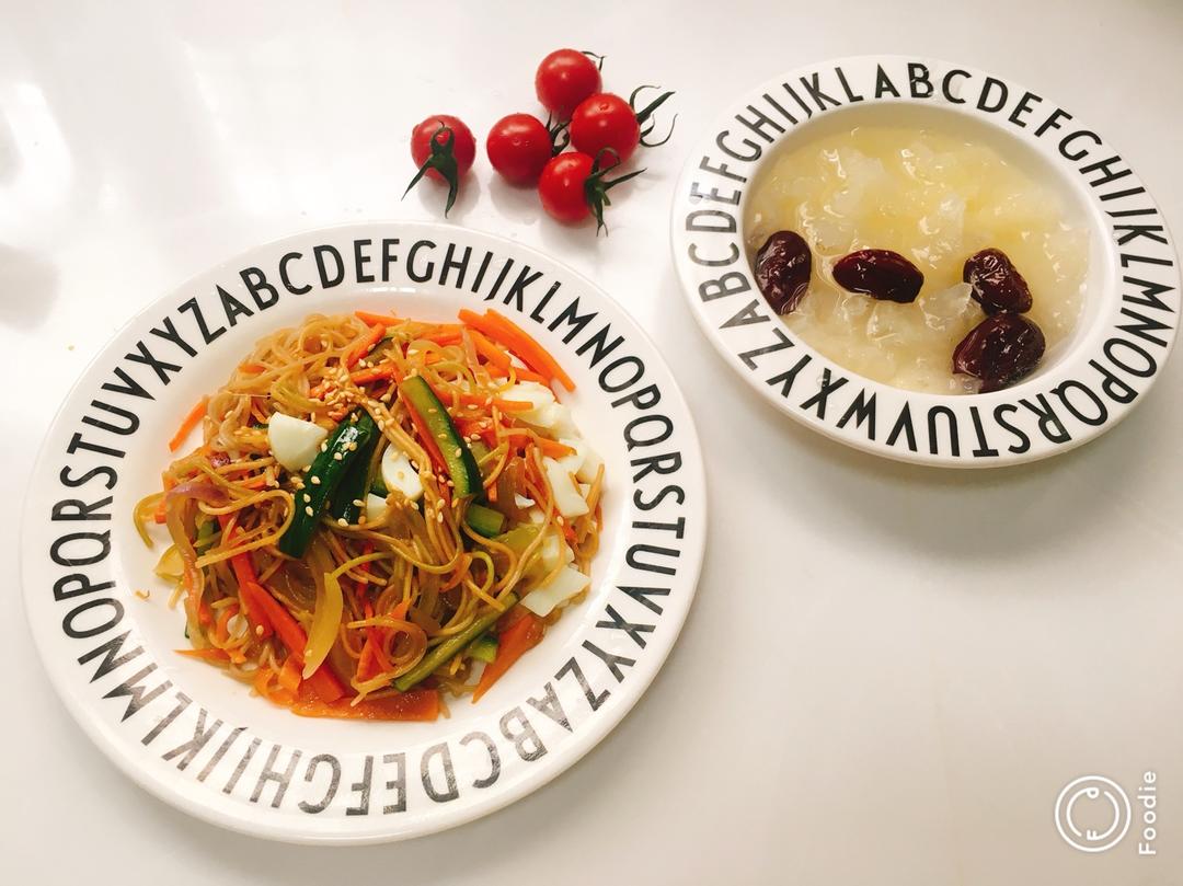2018.4.24 炒蔬菜面+红枣银耳汤+小蕃茄