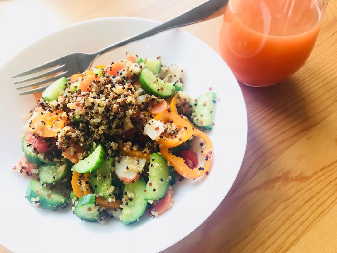 雜蔬藜麥➕紅蘿蔔汁=健康午餐(๑ˊ͈ᐞˋ͈)ƅ̋