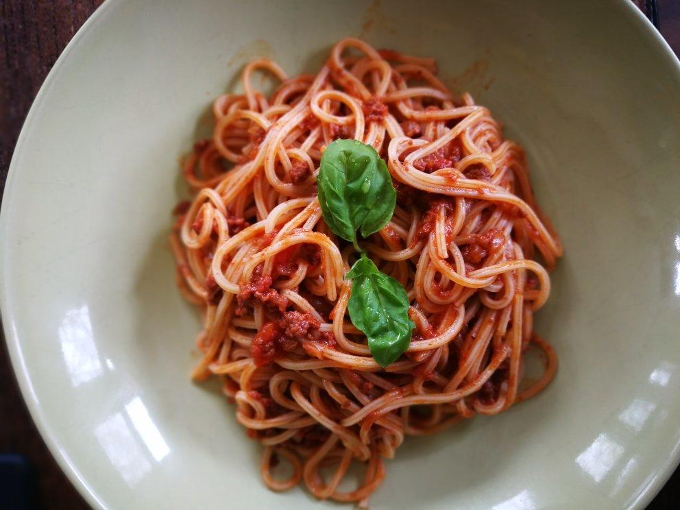 好久沒煮肉醬,中午做了醬,今晚吃肉醬意麵