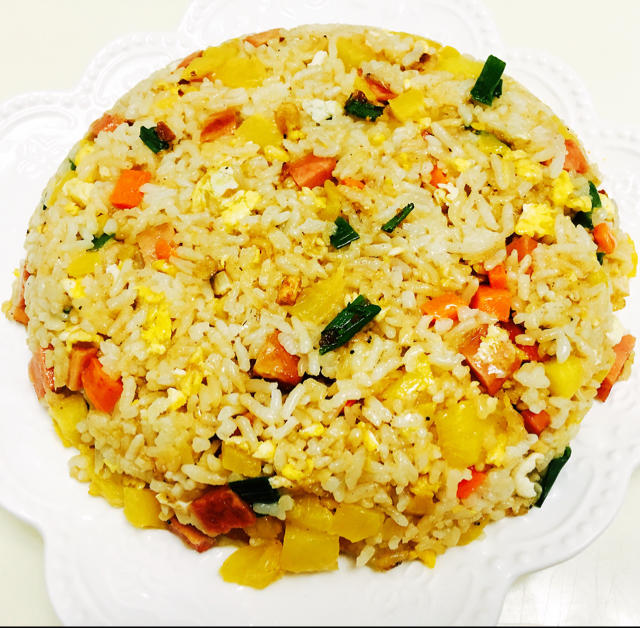 酸酸甜甜的菠萝,颗粒分明的米饭,香炸虾米加火腿,哇哦,你也试试!