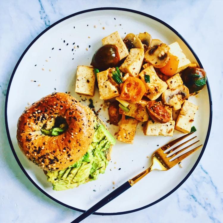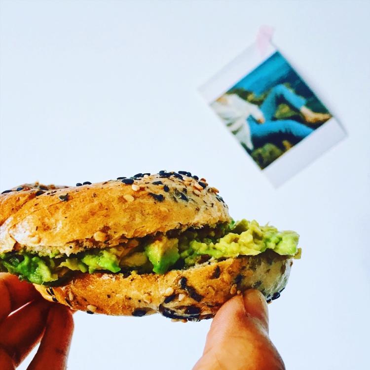 today's breakfast is avo bagel sandwich/ tof...