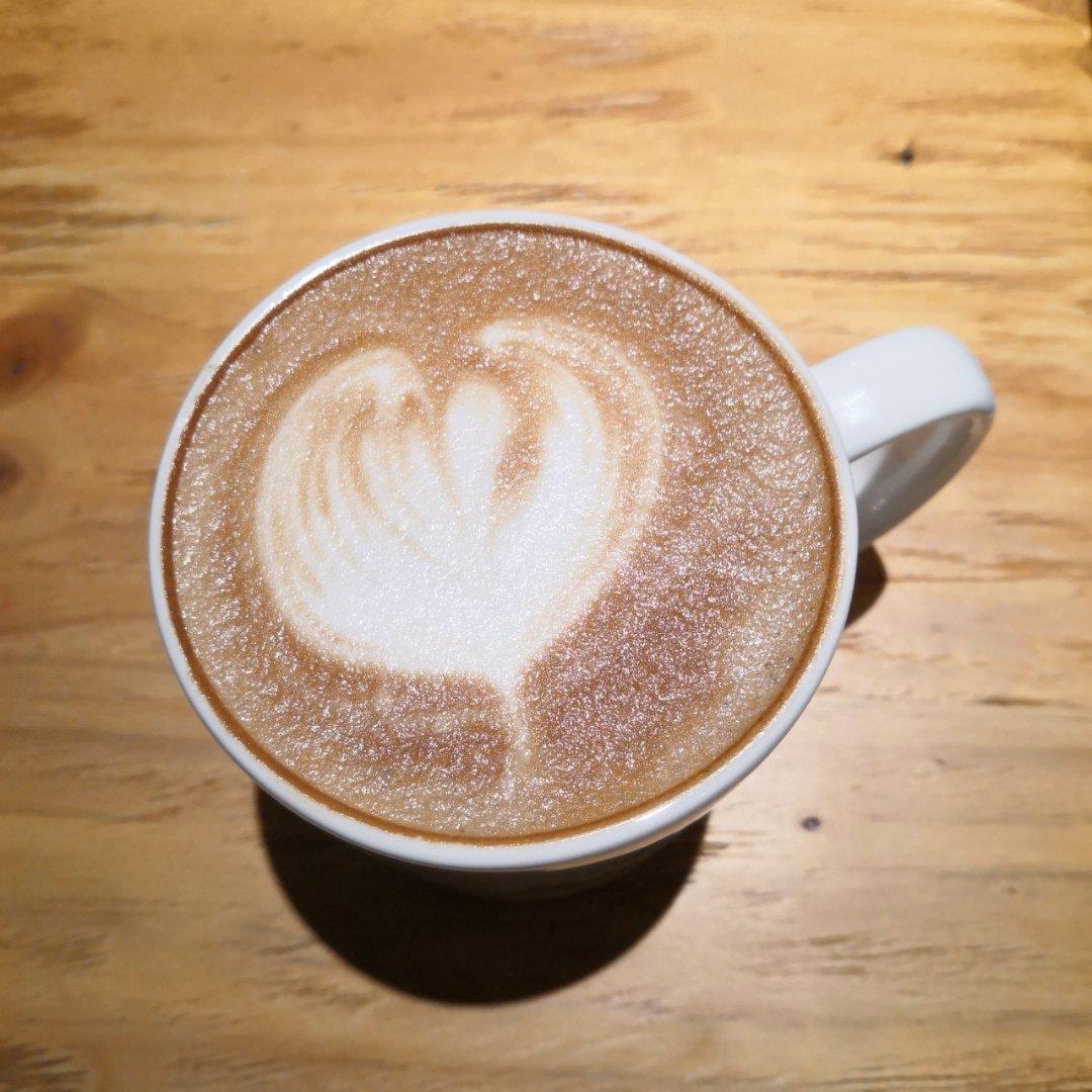 其实这是一杯上错了的咖啡!后来送上的大杯低因卡布拉花是一只走样的...