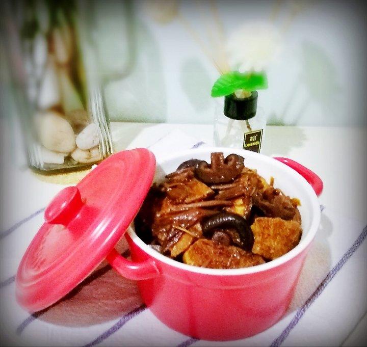 ---黄花菜香菇红烧素鸡---