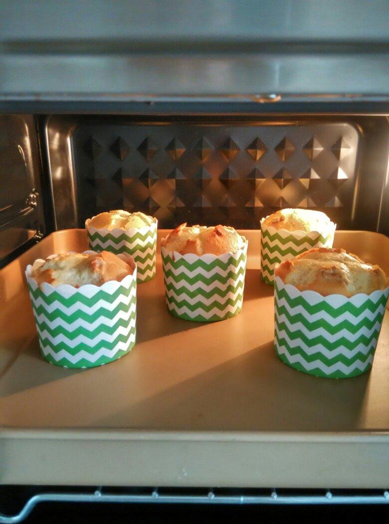 我刚烤好的戚风小蛋糕。加了几颗核桃。