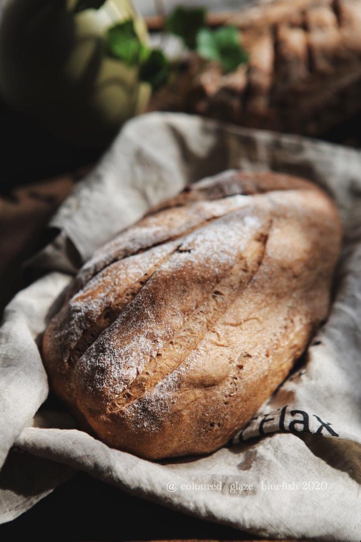 高粉,全麦粉,黑麦粉,栗子粉,一点点麦麸,哦还加葡萄干,这款包简直了!