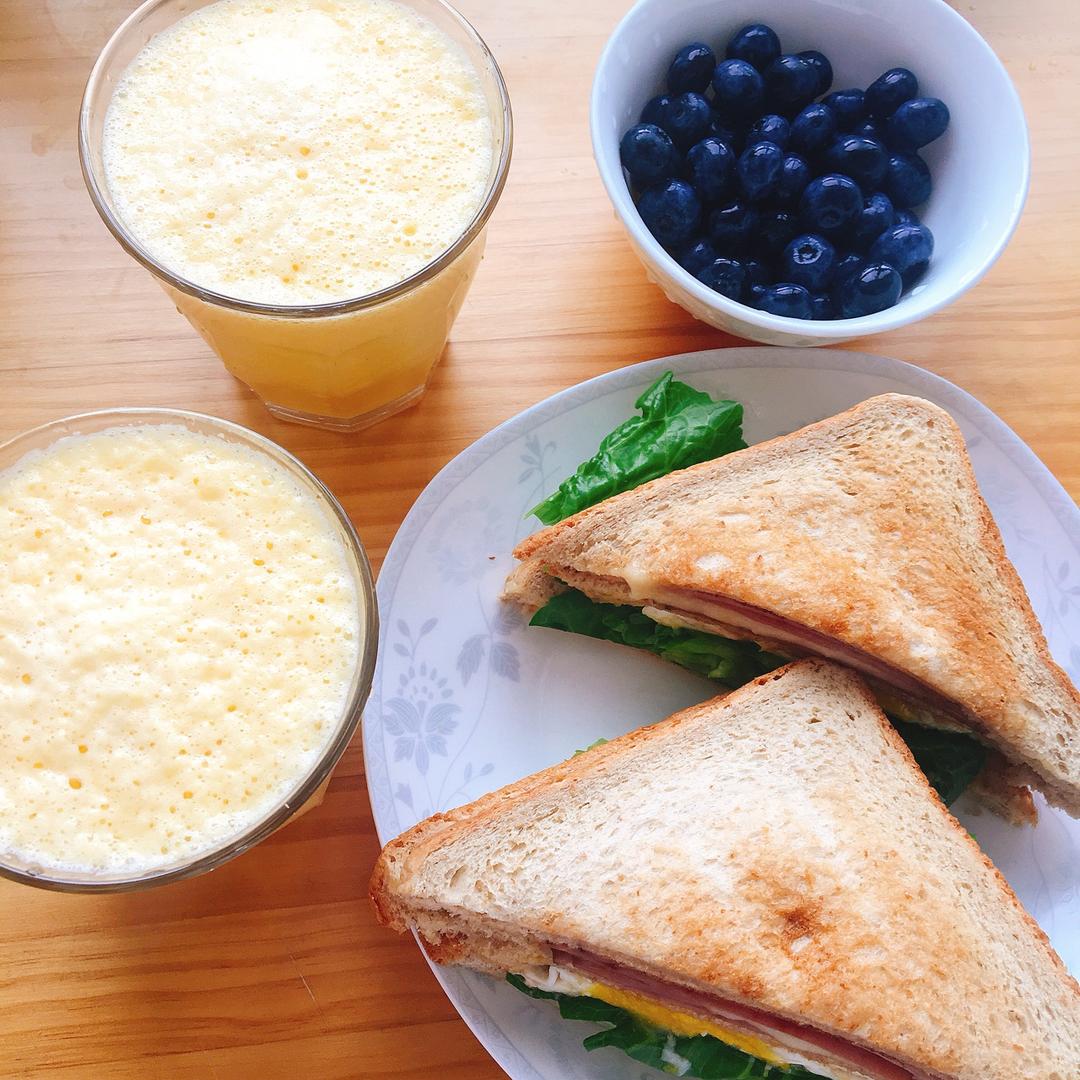 自制三明治🥪➕芒果牛奶➕蓝莓