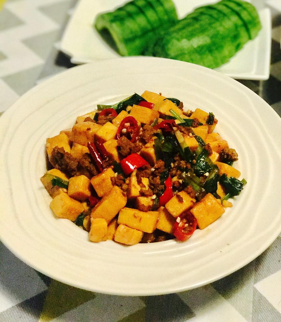 一盘色彩丰富的豆腐