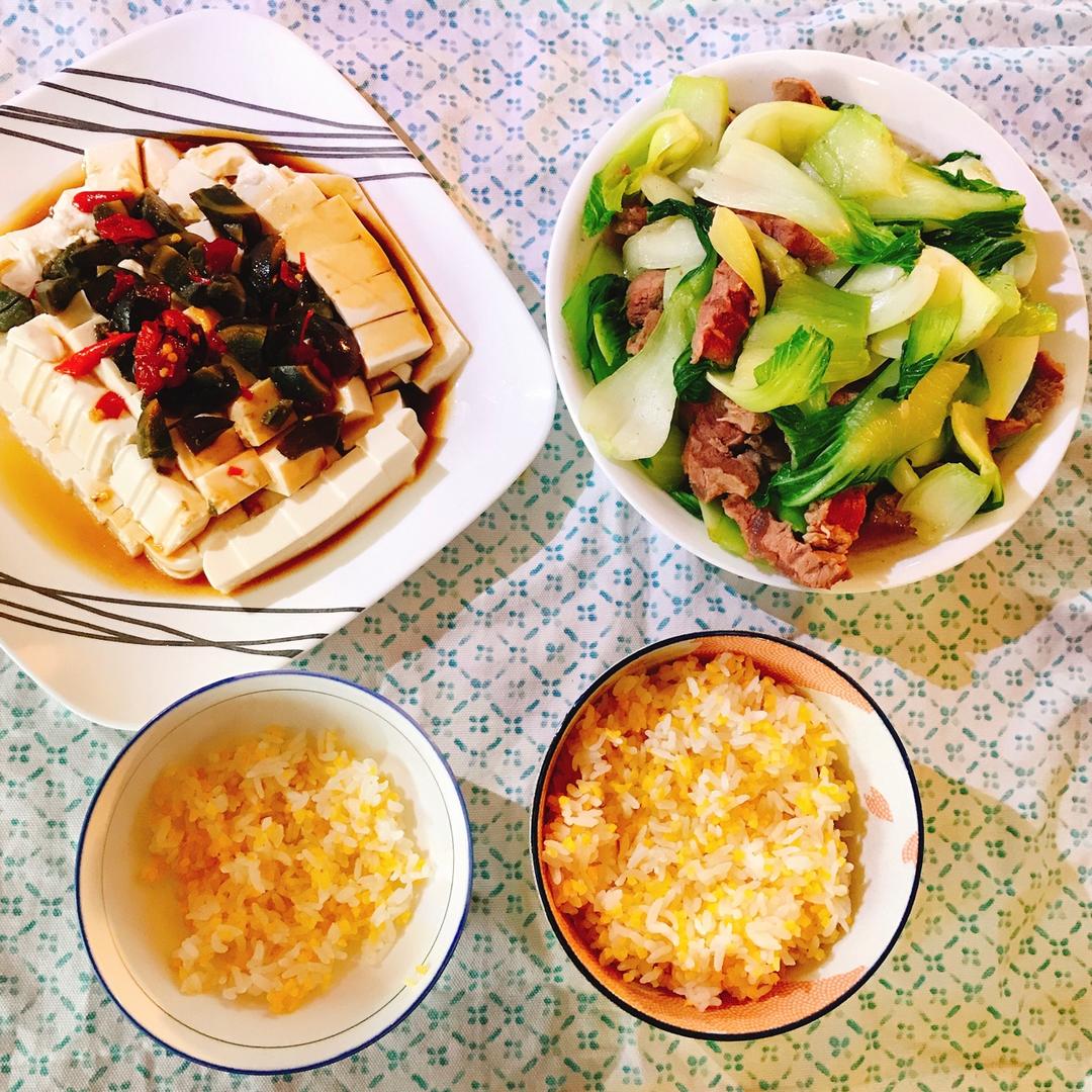 咖喱鸡 孜然鸡胸肉蛋炒饭 皮蛋豆腐 (完全暴露这一周食材的短缺...