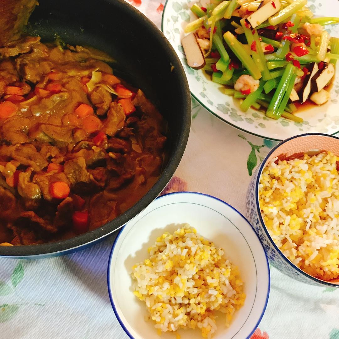 咖喱牛肉 芹菜拌五香干