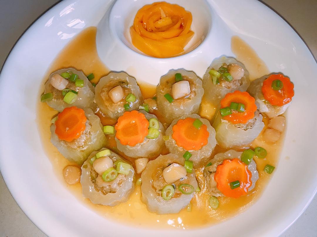配上丝瓜裙带菜鲜美养眼养生(借助了分蛋器)😊