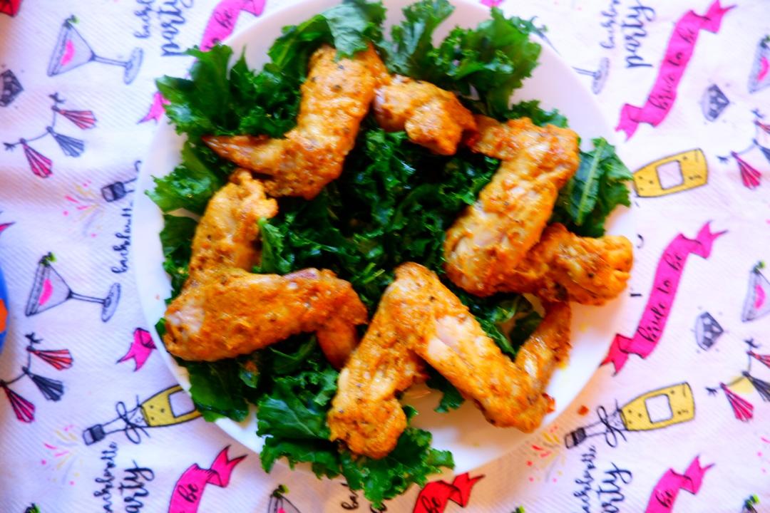 今天的晚饭:Tandoori印度咖喱鸡翅配羽衣甘蓝以及荷兰豆。