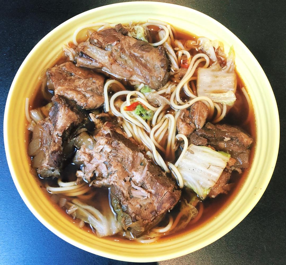 Ocado买的Ribs,其实就是猪软骨,分量十足。提前一晚上卤好,浸泡一夜,第二天中午用一点卤汤下面,味道很赞。