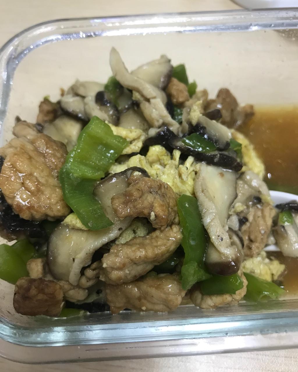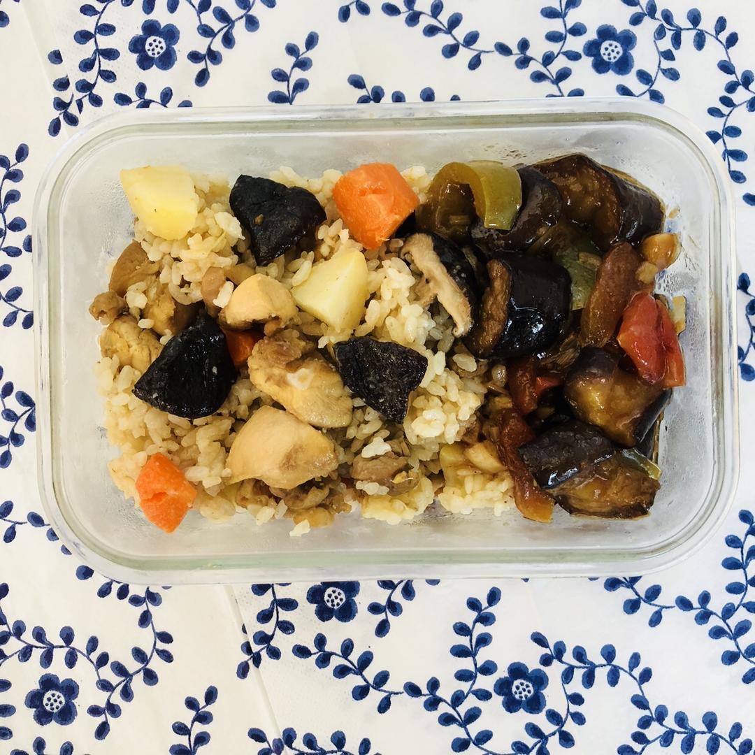 香菇鸡腿饭+焖茄子