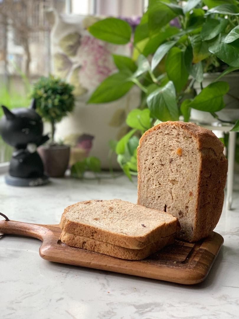 面包机吐司,用了部分酵种、加了配方一半的干酵母,用了多谷物面包粉和自己打的黑麦粉,坚果打碎了(上一台面包机涂层有些磨损,...