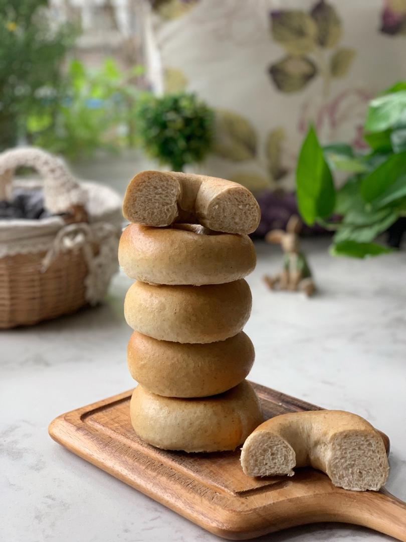 坚持着喂养酵种,剩余部分加了高筋粉、全麦粉、奇亚籽、橄榄油做了贝果🥯,今天的贝果发过了一些,烤箱上色也不太均匀,不过不影...