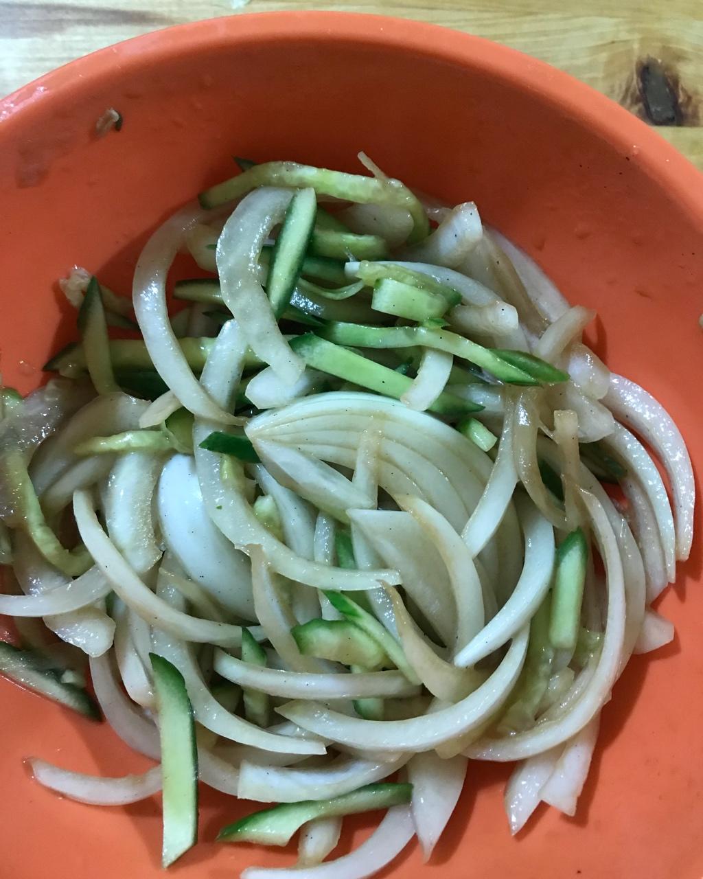 某人买了很大很大一包洋葱,真的是各种做法。今天呛拌,加了点黄瓜,冰水冰过的洋葱一点也不辣,超级甜。超市又见紫色花菜🤪🤪 ...
