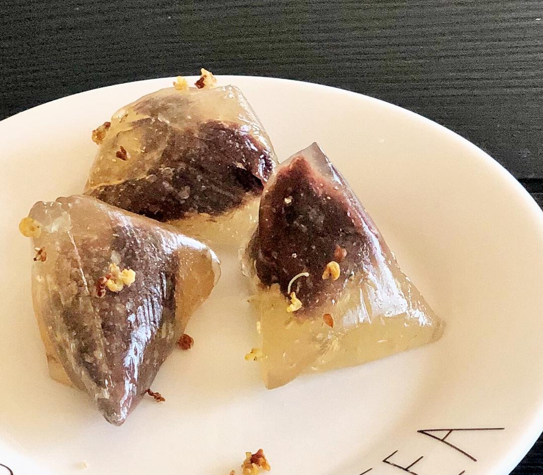 桂花豆沙水晶粽 ~ 美国没有卖水晶粉,找到carol的方子,试下来不错,放两天也不发硬。用桂花水拌的粉,Q糯,口感味道都...