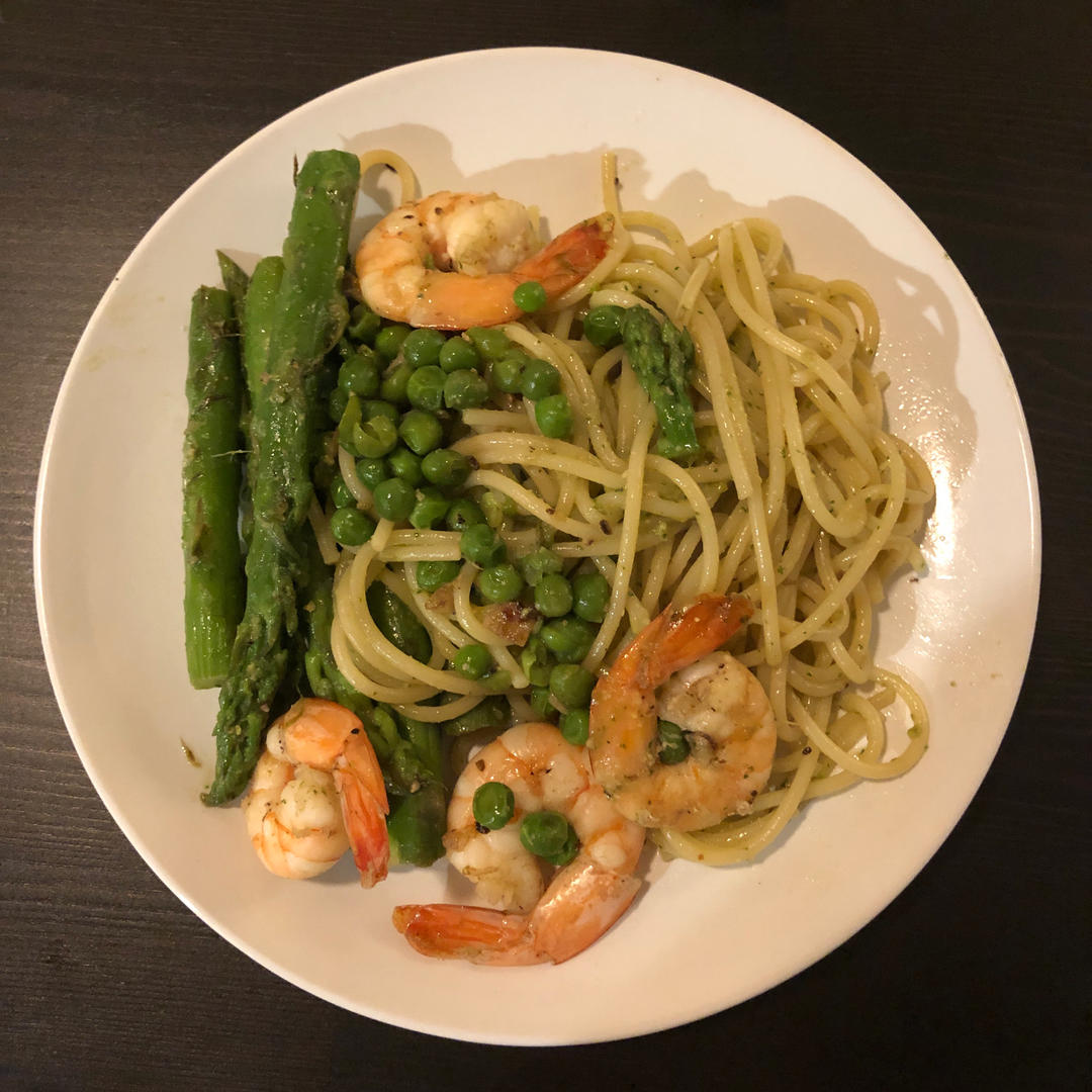 青酱虾仁意面&自制青酱pesto sauce