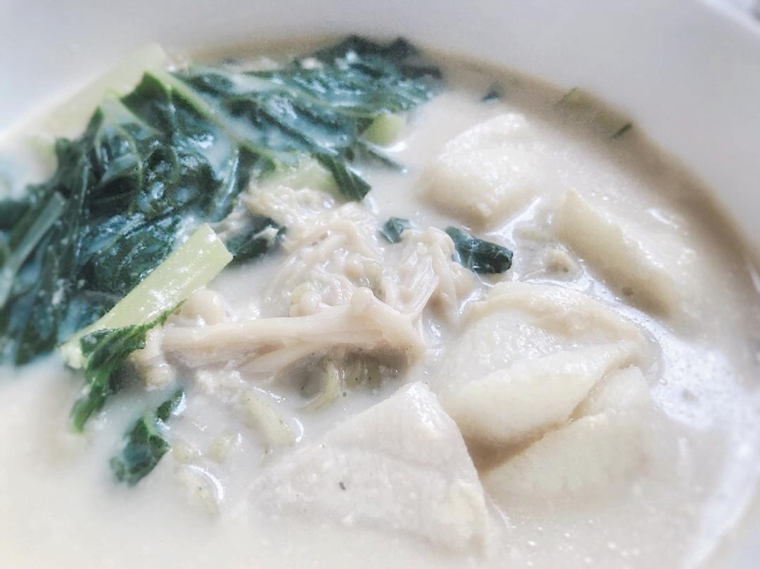 清甜的菜叶裹着香浓的豆浆,细嫩的鳕鱼口感温润,炒鸡养生~