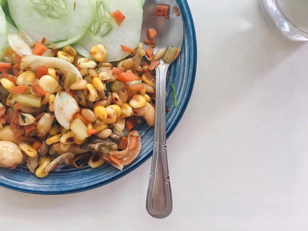 早上的炒玉米百合松仁,还有中午的芦笋炒饭 (〃ω〃)晚餐就没有记录啦2333